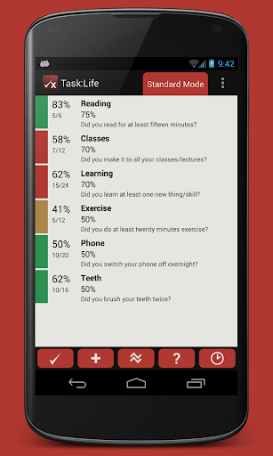 ?? Task:Life encourages you to exceed your own expectations by tracking the percentage of days you succeed and comparing this with your target. You can view a graphs of your history (and see how your performance has improved over time).